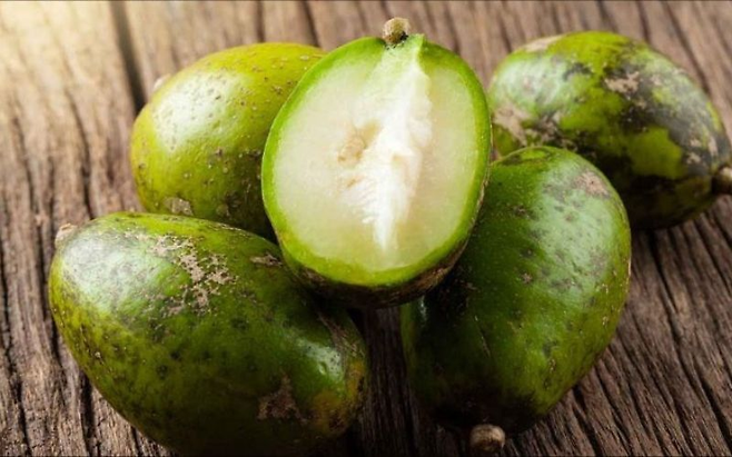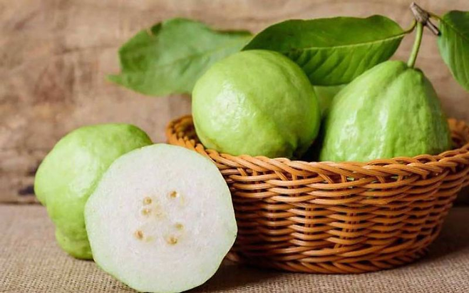 구아바는 연한 녹색 외관과 허브 같은 맛을 가진 과일입니다.