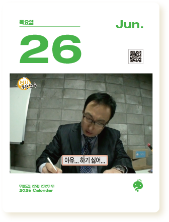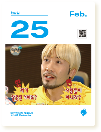 매 페이지마다 삽입된 무한도전의 레전드 장면과 QR코드를 통해, 곧바로 옛날 그 방송 클립으로 떠날 수 있다는 점이 정말 매력적이더라고요. 여행지에 가면 그 풍광을 추억하기 위해 사진을 찍듯, 이 달력도 무한도전이라는 ‘여행지’를 생생하게 기록하게 해주니까요.