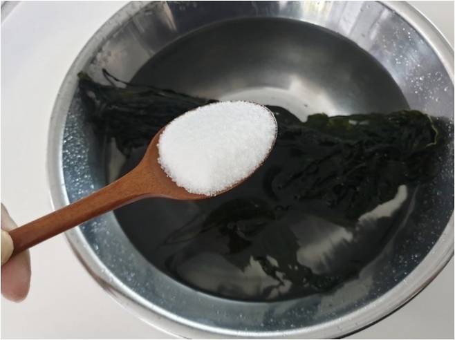 미역 불릴 때 그냥 불리지 말고 설탕 한 스푼 잊지 마세요~
