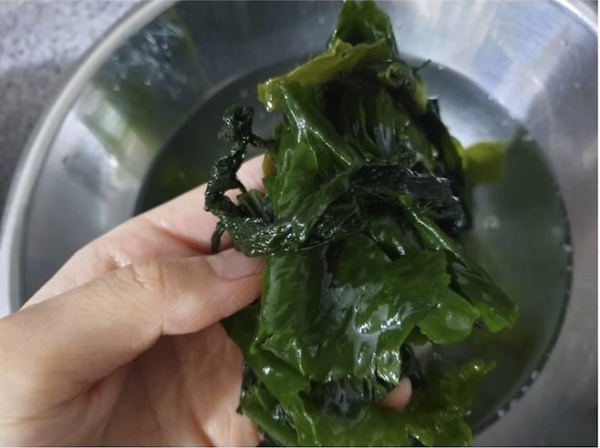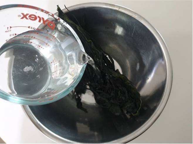 미역이 푹 잠길 수 있게 물을 채워주세요