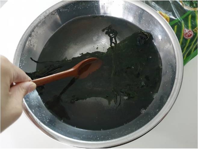 불릴 때 이것 한 스푼만 넣으면 미역 10분이면 다 불릴 수 있어요