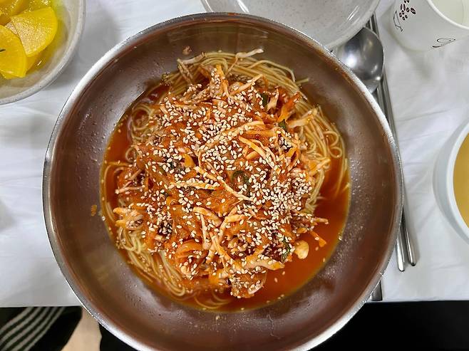 회국수쪽에선 청포도류의 과실의 풍미가 느껴졌어요. 상큼하고 지나치게 달거나 맵지 않은 소스에 신선한 세꼬시가 듬뿍들어갔습니다.