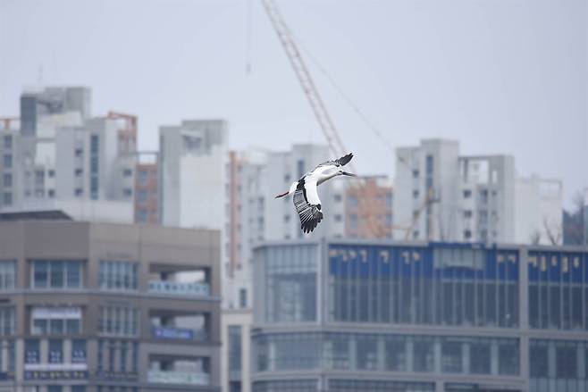 | ▲ 세종시를 비행하는 황새의 모습 |