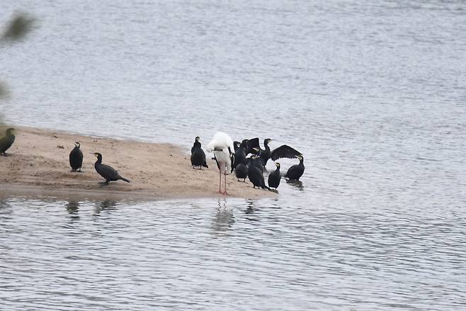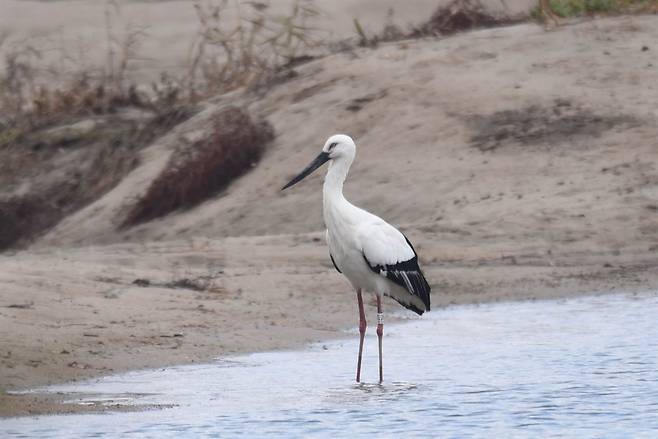 | ▲ 모래톱 주변 물가에 늠름한 황새의 모습 |