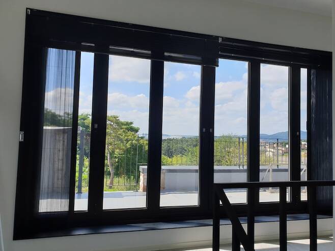 여기는 원래 아래 사진처럼 2층 창문이었는데 너무 답답해서 폴딩도어로 변경했어요.