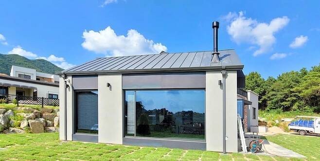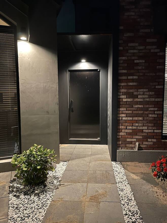 마지막으로 저희 집 외관 사진이에요. 외장은 미장과 금속으로 컨셉을 잡았어요.