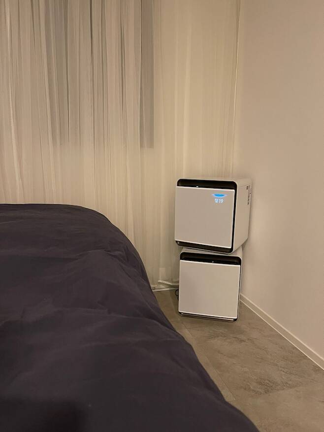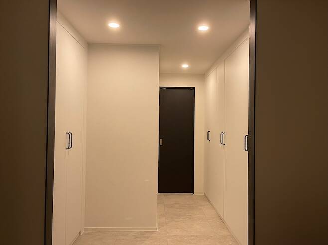 안방은 드레스룸과 자는 공간을 구분했어요. 자는 공간에는 조명을 따로 설치 안 했고, 드레스룸에 조명을 설치하였어요.
