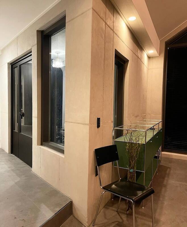 여기는 원래 본동 현관 공간이었어요. 현관 위치가 변경되어 구 현관은 내부로 변경되었어요. 그래서 통 뷰로 변경하여 밖의 풍경을 볼 수 있게 했어요.
