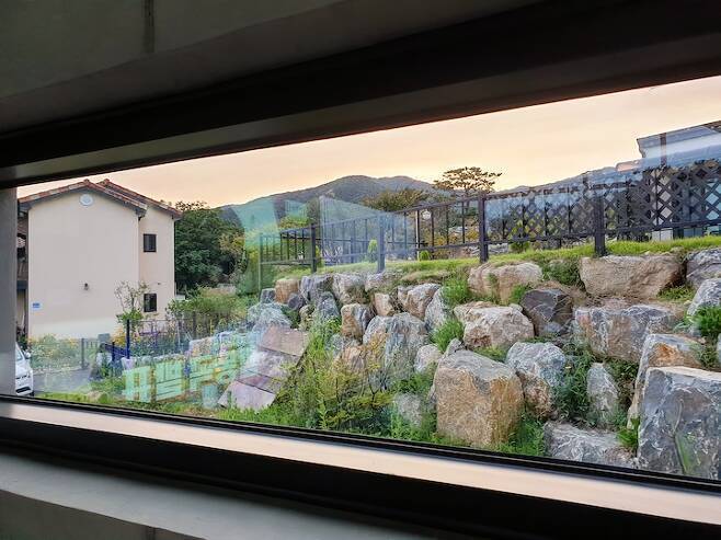 집을 고를 때 디자인도 중요했지만 무엇보다 주변 환경과 뷰를 우선으로 했어요. 시내 중심에서 조금은 멀었으면 좋겠고 풀벌레 소리가 잘 들리는 조용하고 산 속 아래 작은 마을 같은 느낌이면 좋겠다 싶었어요. 자연의 느낌이 가득한 곳을 원해서 정형화된 주택단지들은 피했구요.