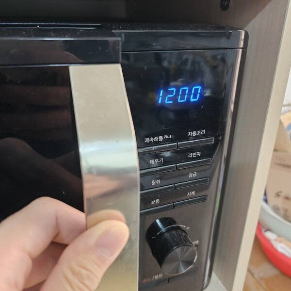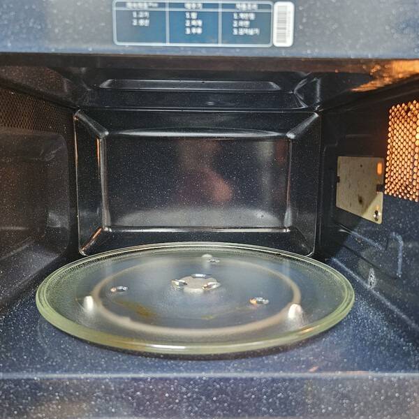 2~3분만 돌리면 수증기가 내부에 가득 차고, 레몬 성분이 눌어붙은 기름때를 녹여줍니다. 그대로 문을 닫은 채 5분만 두면 증기 효과로 묵은 때가 자연스럽게 불어요.