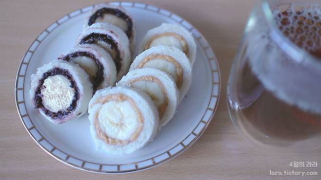 안녕하세요, 4월의라라입니다 :)오늘은 남녀노소 모두 좋아할 간식, 바나나식빵롤 소개해요.