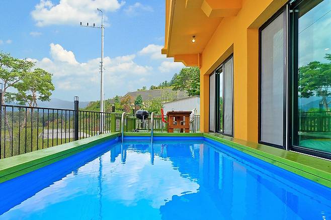 알록달록한 펜션의 외관도 상당히 매력적이랍니다. 전 객실 독채로 이루어져 있으며 댕댕이와 주인과 특별한 공간에서 소중한 추억을 만들 수 있습니다. 이 외에도 개별 바비큐장, 수영장, 마당 등 글램핑 느낌이 나는 용품들이 모두 준비되어 있으니 사랑스러운 댕댕이와 맛있는 캠핑도 즐겨보세요!