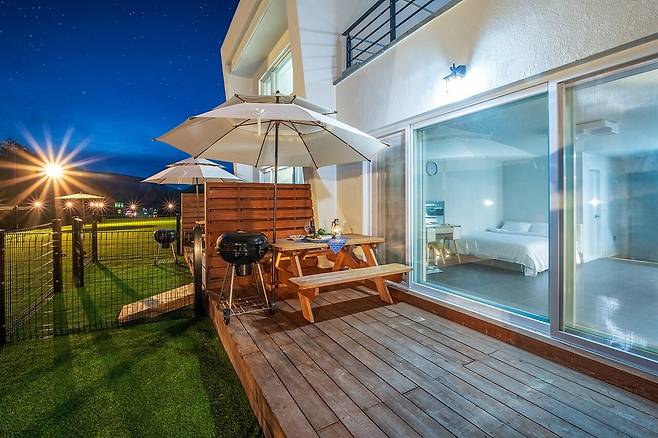 세스코 방역 및 객실 바이러스 탈취 시스템을 항시 가동하고 있기 때문에 반려견과 안전하게 힐링의 시간의 가질수 있습니다. 또 아늑한 바비큐장과 수영장도 마련되어 있습니다. 다만 독채 펜션은 아니기 때문에 다른 댕댕이들과 잘 어울릴 수 있는 반려견과 오는 것을 추천해 드립니다.