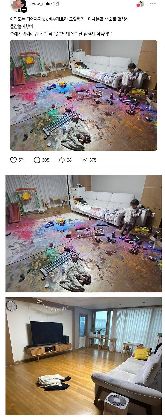 쓰레기 버리러 간 사이 딱 10분 만에 일어난 상황