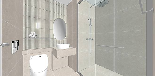 오래된 아파트의 신혼집에 살면서 가장 불편했던 부분은 화장실이었어요. 비좁은 샤워 공간, 항상 젖어있는 바닥. 때문에 벽 모서리엔 곰팡이가 검게 올라오고 아무리 청소해도 쾌적하지 않은 느낌이었죠. 새집의 화장실은 호텔같이 깔끔한 상태를 유지할 수 있었으면 좋겠다고 생각했습니다. 샤워부스가 있어 완벽한 건식 사용이 가능했으면, 청소가 쉽고 언제나 뽀송함을 유지했으면 하는 것이 가장 큰 목표였죠.