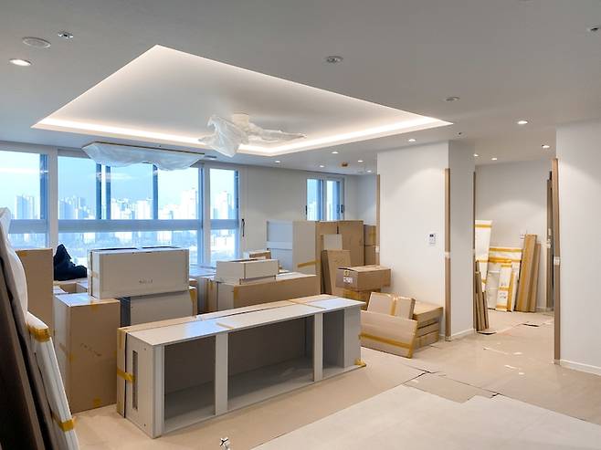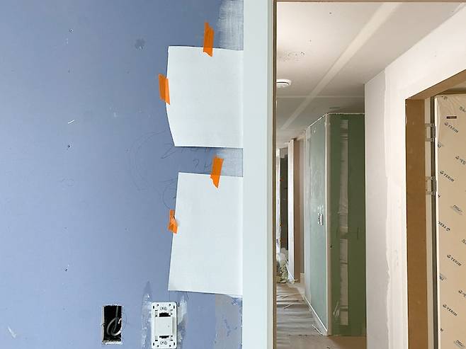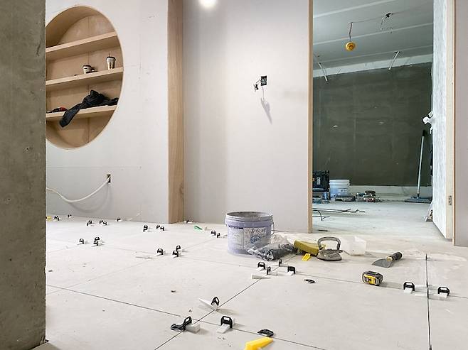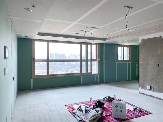 마이너스 옵션으로 분양을 받았다고 하면 지인들은 "뭐가 마이너스야? 가구가 없어?"라고 묻습니다. 그럼 저는 가구는커녕 변기도 없고 타일도 마루도 없다고 말합니다. 도배도 되어있지 않은 콘크리트와 석고 보드 마감이 끝이라고 말하면 아무도 그게 어떤 모습인지 상상하지 못해요.