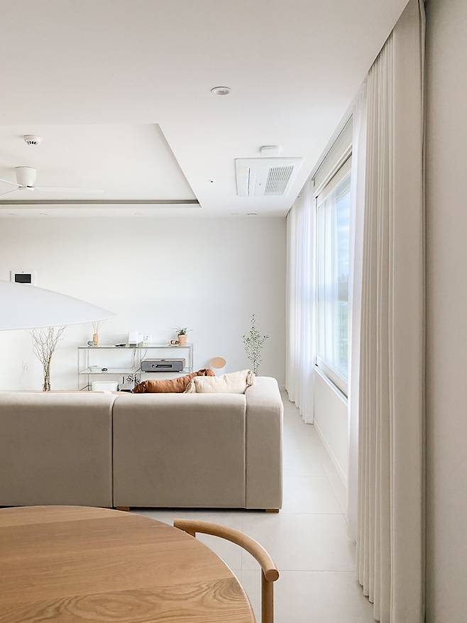 아파트가 지어지는 3년 동안 남편과 함께 우리가 살고 싶은 집에 대한 다양한 그림을 그렸습니다. 수시로 현장에 찾아가 우리 집이 위치한 층수를 확인하며 그곳에서 바라보는 미래의 아침을 상상하곤 했어요. 그리고 그 벅찬 느낌을 그대로 작업에 옮기며 인테리어를 구상했습니다.