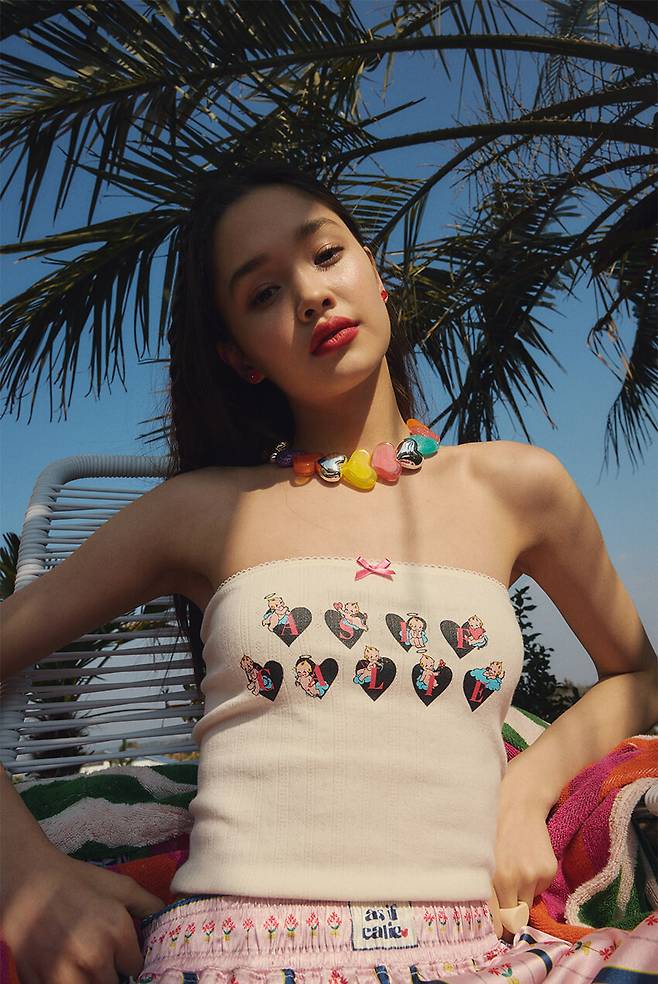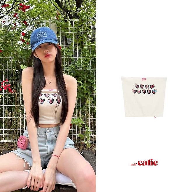 장원영이 착용한 제품은 '애즈이프캘리'의 탱크탑입니다.