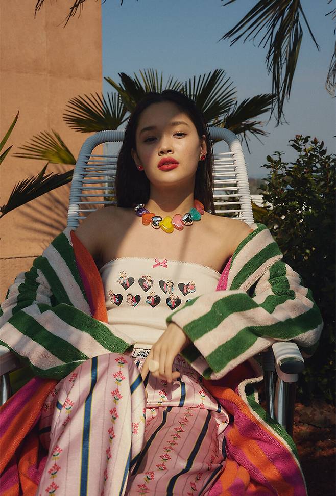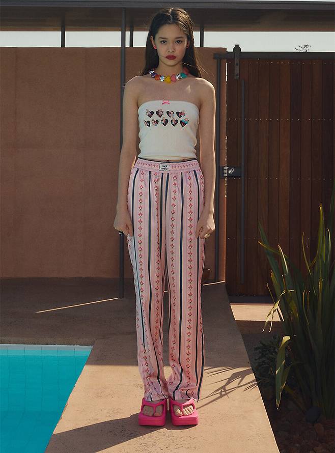 직접 개발한 asifCALIE 폰트와 함께 아기 천사가 어우러진 아트웍이 프린트로 배치 되어 있으며 위 아래 레이스 밴드로 착용시 안정감을 더욱 높여 주었는데요.
