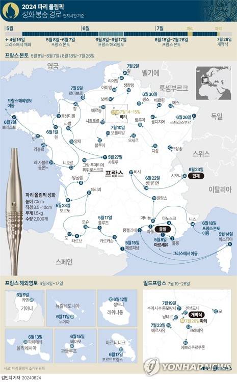 [그래픽] 2024 파리 올림픽 성화 봉송 경로