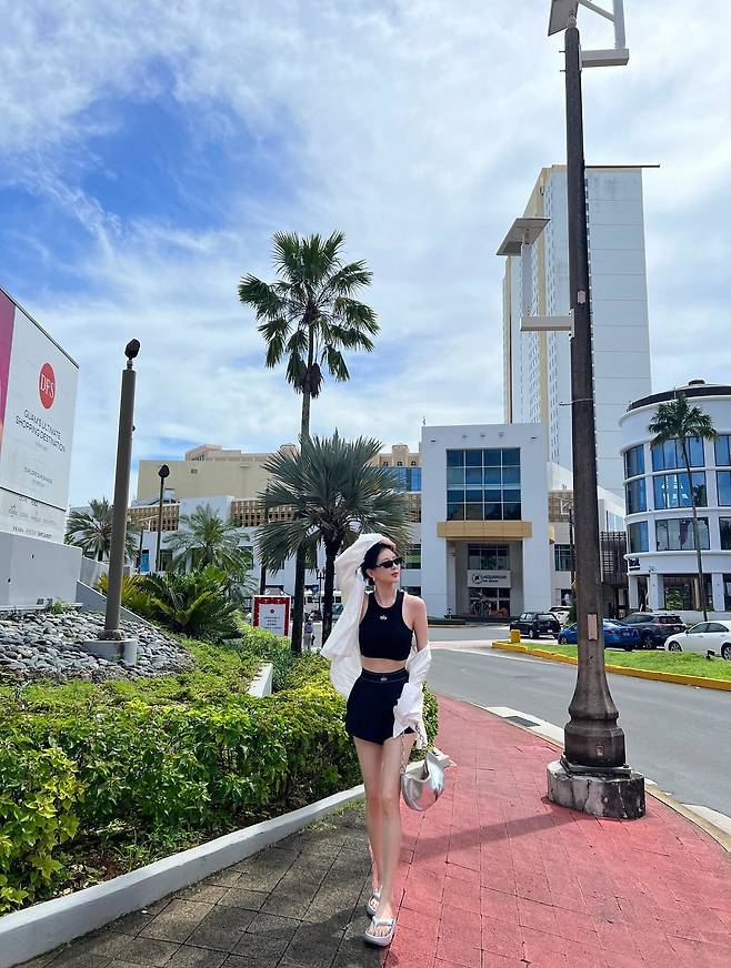 서현이 괌 거리에서 공개한 블랙 투피스 룩이 화제를 모으고 있다. 눈부신 햇살과 야자수가 어우러진 이국적 풍경 속에서 서현은 블랙 크롭탑과 쇼츠로 구성된 세련된 리조트 스타일을 선보였다. 가볍게 걸친 화이트 셔츠는 선선한 바람을 담은 듯 여유로운 무드를 연출했고, 은빛 메탈릭 백과 화이트 플립플랍은 도심 속에서도 어울리는 여름 휴양지 코디로 시선을 끌었다. 선글라스로 완성한 당당한 자태는 긴 각선미와 직각 어깨 라인을 더욱 돋보이게 했다.
