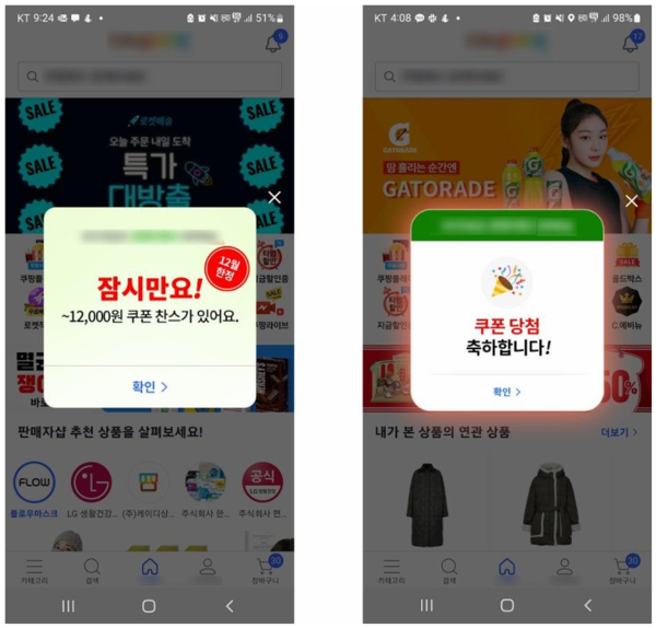 ◆ "10,000원 선착순 쿠폰 도착!" 이라며 튀어나오는 팝업들(하지만 특정 카드 사용자에 한함)