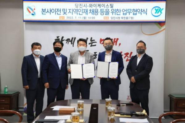 결국 민원을 견디지 못한 YK스틸은 서해바다를 낀 충남 당진시 석문국가산업단지 일대로 공장을 옮기는 결정을 내렸다. 2019년 말 LH로부터 석문면 토지 및 건물 15만7296㎡를 391억원에 취득한 뒤, 2020년 당진시와 3000억원 규모 투자유치 협약까지 체결했다. 2024년 12월까지 부산시 사하구에 있던 본사와 공장을 모두 이전하고, 신규 직원 중 30% 이상을 당진시 거주자로 뽑는 지역인재 전형을 실시하는 내용이다.