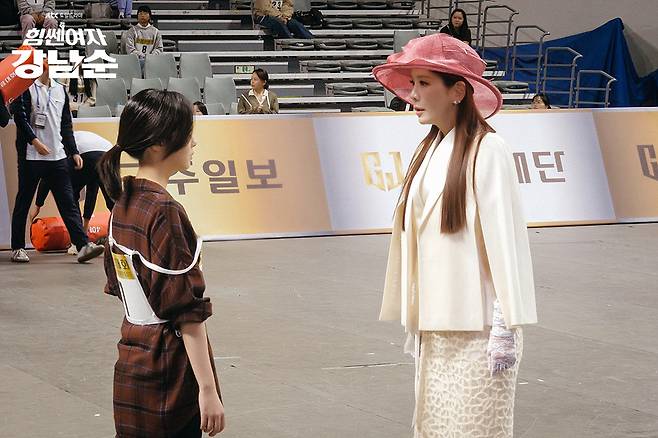 ‘힘쎈여자 강남순’은 3대에 걸쳐 선천적으로 엄청난 괴력을 지니고 태어난 모녀들이 서울 강남을 중심으로 신종마약 범죄를 파헤치는 이야기를 그린 드라마. 김정은, 김해숙, 이유미가 주연하고 있다. 옹성우와 영탁 등 가수 출신 연기자들의 활약도 빛난다.
