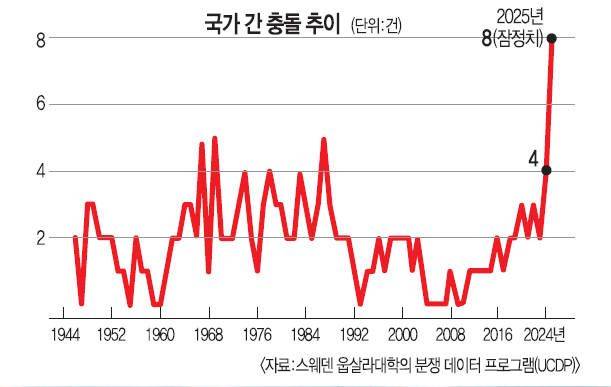 적극적으로 분쟁을 억제하던 미국의 역할이 변화되면서 세계적으로 분쟁 억지력 자체가 줄어든 것으로 풀이된다. 박종희 서울대 정치외교학부 교수는 “트럼프 대통령이 패권 국가의 역할을 거부하다 보니 국제사회가 일종의 ‘진공 상태’가 됐다. 그동안 움츠려 왔던 국가들에는 기회가 되고 있다”고 분석했다. 국제 질서가 균열됨에 따라 그 틈에서 전쟁이 빈번해지고 있다는 것이다.