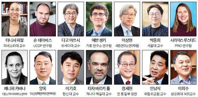 △해외=다고 아쓰시 일본 와세다대 교수, 라파엘 우리베네이라 독일 하이델베르크 국제분쟁연구소(HIIK) 데이터분석과장, 레이철 민영 리 미국 스팀슨센터 연구원, 숀 데이비스 스웨덴 웁살라대 분쟁 데이터 프로그램(UCDP) 연구원, 시리 아스 루스타드 노르웨이 오슬로 국제평화연구소(PRIO) 연구교수, 에반 생키 미국 카토 연구소 연구원, 이안 브레머 미국 컬럼비아대 교수, 제니퍼 카바나 미국 디펜스 프라이어리티스 연구원, 제임스 김 스팀슨센터 한국프로그램 디렉터, 타니샤 파잘 미국 미네소타대 교수, 틸만 러프 호주 멜버른대 교수, 타자 바르키 폴 캐나다 맥길대 교수