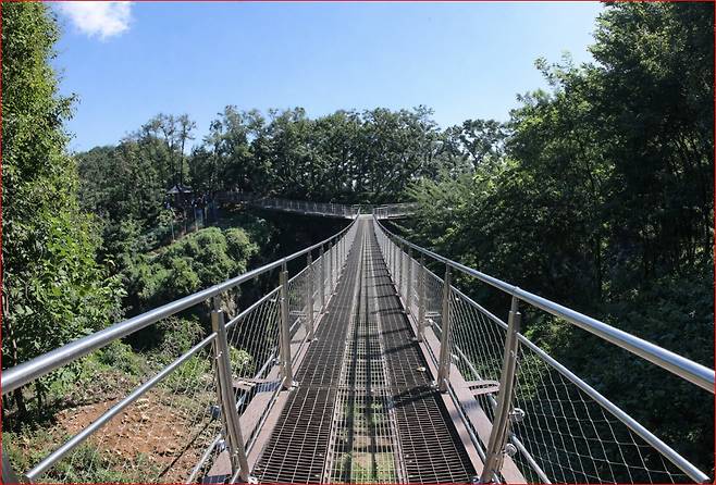 다리 바닥이 뚫려 있는 구간이 있으므로 소지품(핸드폰 등) 추락에 주의하세요.