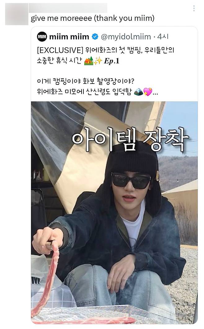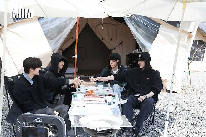 '위에화즈' 장하오, 리키, 김규빈, 한유진이 '밈'(MIIM)과 함께 캠핑을 떠났습니다.