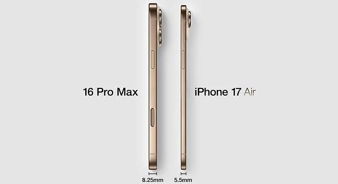 올해 아이폰은 갤럭시와 마찬가지로 라인업 변화가 있을 전망이다. 기존 플러스 모델을 없애고 ‘아이폰17 에어’ 모델을 새롭게 만들었다. 아이폰 17 에어는 네이밍에서 유추할 수 있듯 휴대성에 초점을 뒀다. 5.5mm 두께로 역대 가장 얇은 아이폰이 탄생할 전망이다.