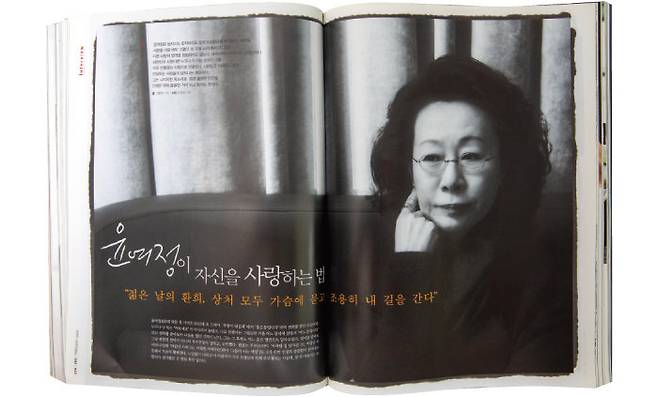 윤여정은 다채로운 얼굴을 가진 배우다. 1966년 TBC 3기 공채 탤런트로 데뷔해 1971년 드라마 '장희빈’으로 인기를 누렸고, 같은 해 김기영 감독의 영화 '화녀’로 주목받았다. 이후 결혼과 이혼 등 개인사로 공백기를 가졌다 복귀해 '사랑이 뭐길래’ '목욕탕집 남자들’ '넝쿨째 굴러온 당신’ 등 다양한 드라마에 출연하는 한편, 영화 '하녀’ '돈의 맛’ '계춘할망’ '미나리’ 등으로 필모그래피를 쌓아왔다. 평소 인터뷰 안 하기로 유명했던 그는 드라마 '그들이 사는 세상’ 종영 후 '여성동아’ 2009년 2월호 인터뷰에서 솔직하고 유쾌한 이야기를 들려줬다. 자신을 "일부러 좋은 사람으로 포장하지는 말아달라"는 말로 시작한 인터뷰는 그간의 연기 인생과 아들 이야기까지 다양한 주제로 이어졌다. 그는 롱런할 수 있는 비결에 대해 "재주는 젊었을 때 잠깐 눈에 띄는 거 같다. 정말 나를 유지해주는 건 노력일 것"이라고 말하며 연기자에게 필요한 자질에 대해 "암기력, 집중력, 관찰력, 임금협상력"이라는 명쾌한 답을 들려줬다. 그는 또한 "내가 위기를 겪으면서 느낀 건, 아무 말도 위로가 안 됐다"면서 지금 힘든 일을 겪고 있는 사람들에게 "견뎌라. 견디면 시간이 가더라"는 위로의 말을 전했다. 윤여정은 2021년 영화 '미나리’의 순자 역으로 미국배우조합상 영화 부문 최우수 여우조연상, 영국아카데미영화상(BAFA) 여우조연상, 제93회 아카데미 여우조연상을 수상하며 세계적인 배우 반열에 올랐다.