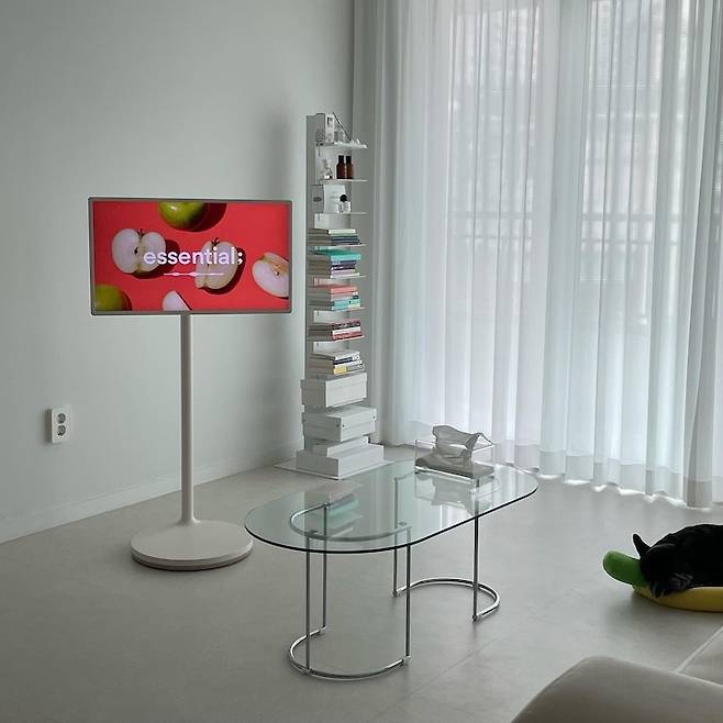 이리저리 이동이 가능한 혼자 보기 딱 좋은 사이즈 lg 스탠바이미!