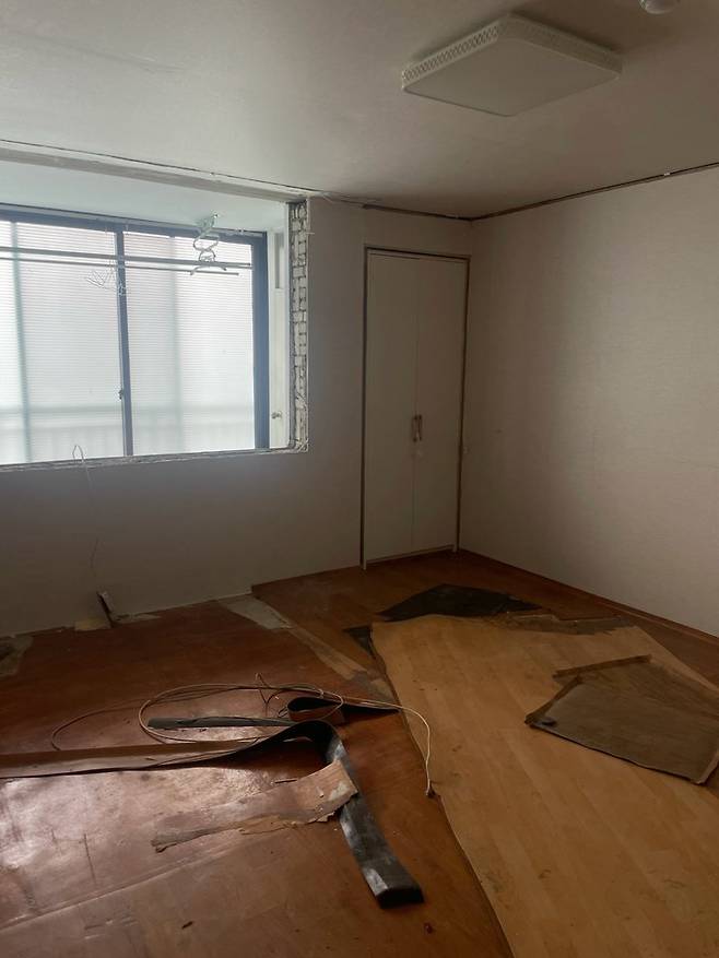 베란다에 보일러 공사를 할까 하다가 그냥 다시 베란다를 설치하기로! 베란다 설치를 위해 장판을 걷어내고 장판을 걷어내니 나무가 깔려 있어 나무를 걷어 냈는데 충격..! 이전에 있던 섀시(새시) 유리가 다 조각조각 깨진 채로 나무 바닥 아래를 채우고 있었어요.😧