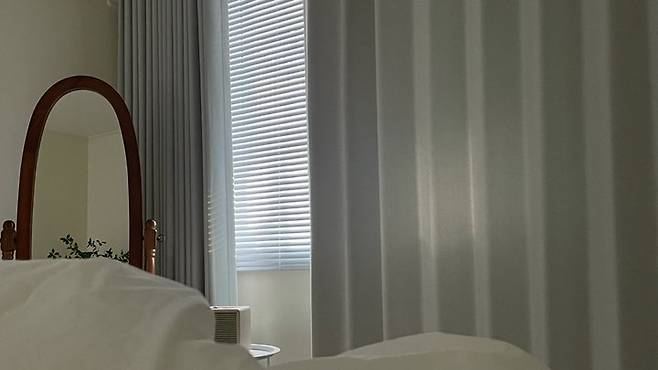 벽에는 창문과 붙박이장을 모두 가릴 수 있게 블라인드와 암막 커튼을 설치해서 호텔 같은 느낌을 더했어요.