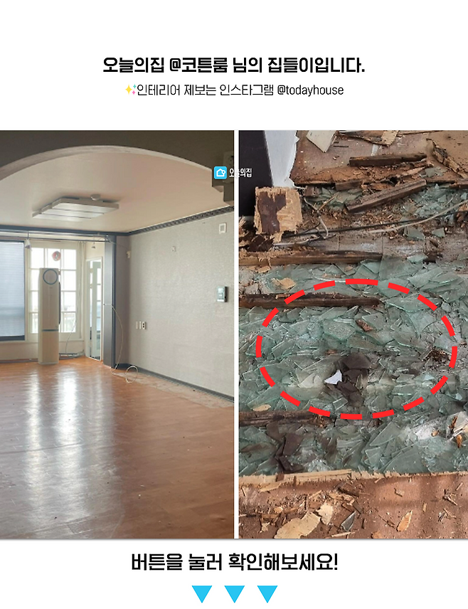 얼마나 놀랐던지... 이전 주인분도 이건 모르고 그냥 사신 거겠죠..? 이렇게 비양심적인 업체가 있는 게 너무 속상했고 놀랐어요.. 이 유리조각들을 다 치우는데 시간도 돈도 더 들었지만 그래도 살기 전에 알게 되고 치운 게 다행이라는 생각이 들었어요..😮💨