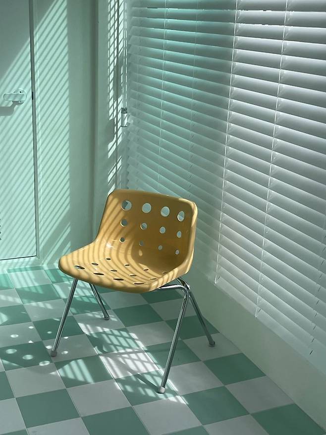 베란다 타일은 처음에는 무난한 그레이 톤으로 하려고 했다가 포인트를 주고 싶어서 고민 끝에 선택하게 된 200각 컬러 타일! 민트, 화이트 컬러로 체커보드 모양으로 붙였는데 아주 만족하고 있어요! 섀시 유리도 초록빛이 돌아서 너무 잘 어울려서 아주 만족하고 있답니다.