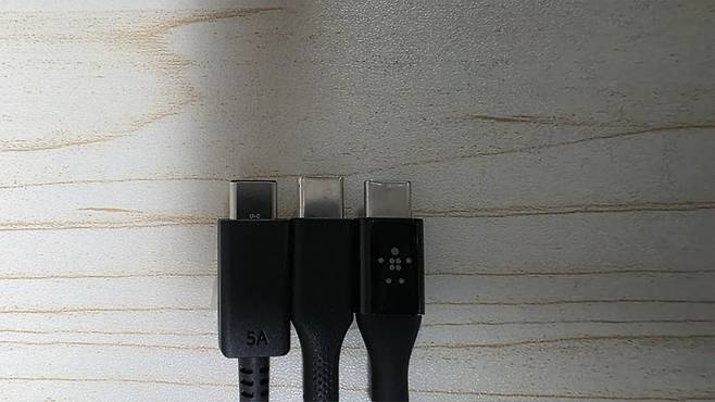 왼쪽부터 삼성 5a 케이블, 클레버 Qi2 맥세이프 충전기 번들 케이블, 벨킨 케이블입니다.