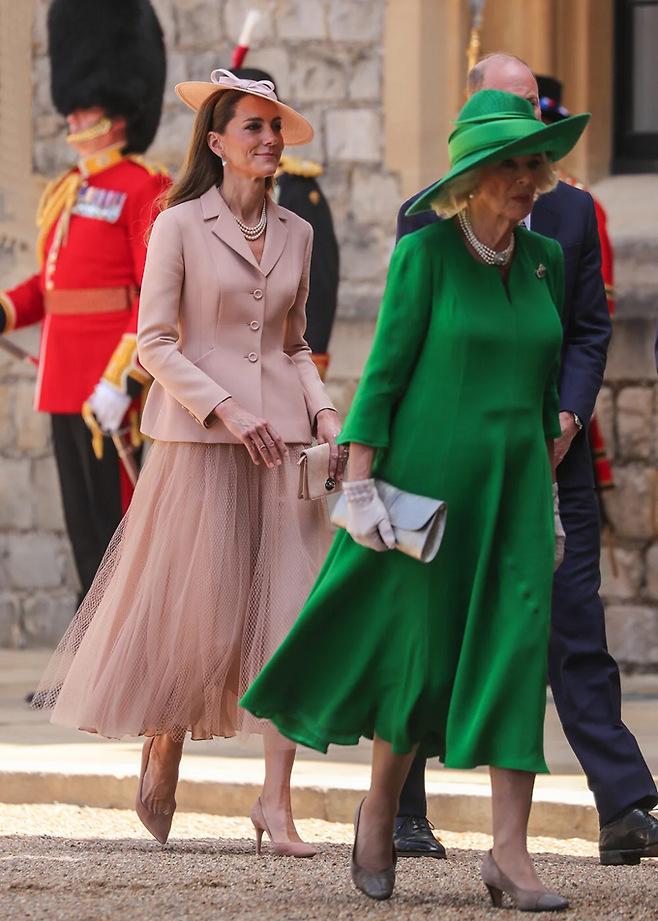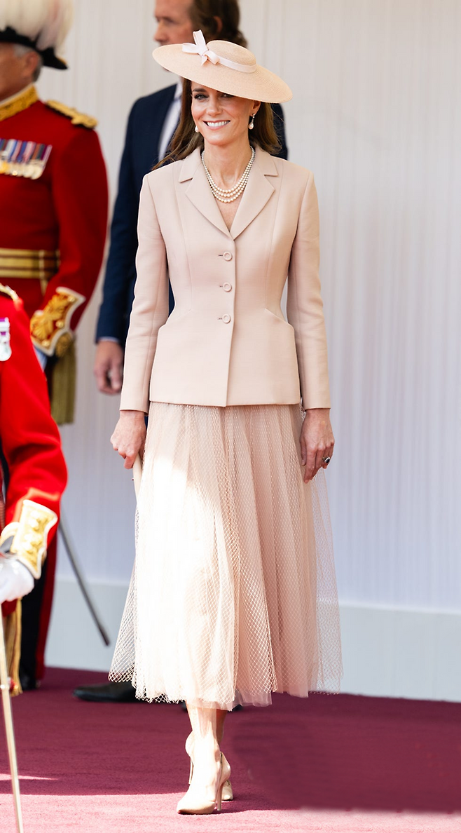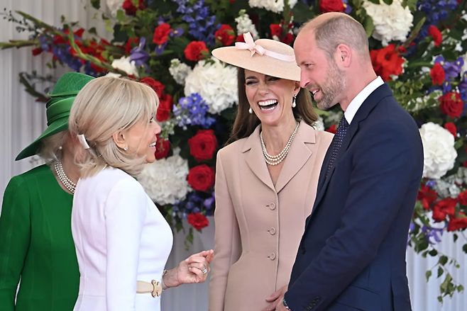 에마뉘엘 마크롱 프랑스 대통령과 브리짓 마크롱 영부인 국민 방문에 맞춰 케이트 미들턴은 프랑스 럭셔리 디올이 2024 컬렉션에 선보인 핑크 레이디룩을 통해 프랑스에 경의를 표했다.