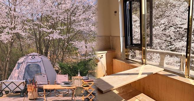 이 풍경을 객실의 침상에서도, 바베큐장에서도, 야외 자쿠지 탕에서도 감상할 수 있어 봄 벚꽃 여행에서 여유로운 시간을 만끽하고 싶은 분들에게 추천하는 벚꽃 숙소입니다.