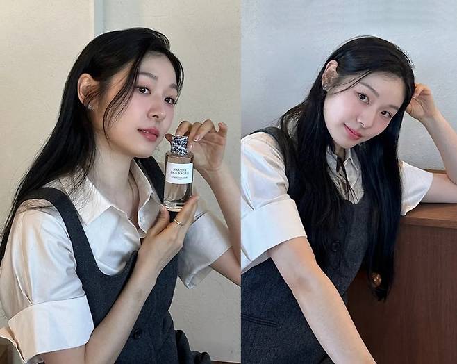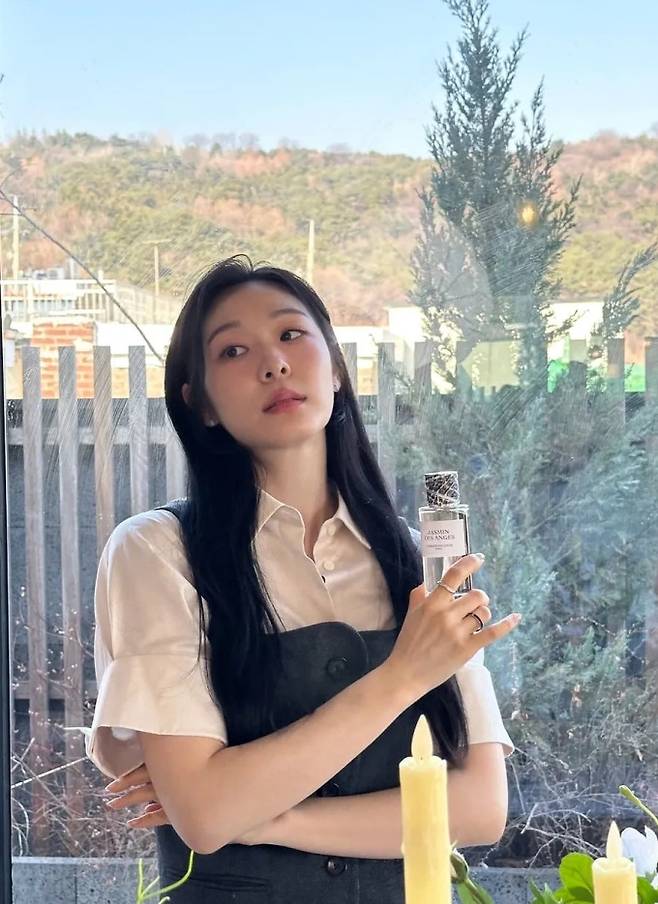 또 내추럴한 웨이브 헤어 스타일에 수수한 메이크업, 그리고 손에 든 명품 향수로 우아하면서도 은은한 매력을 발산했다.