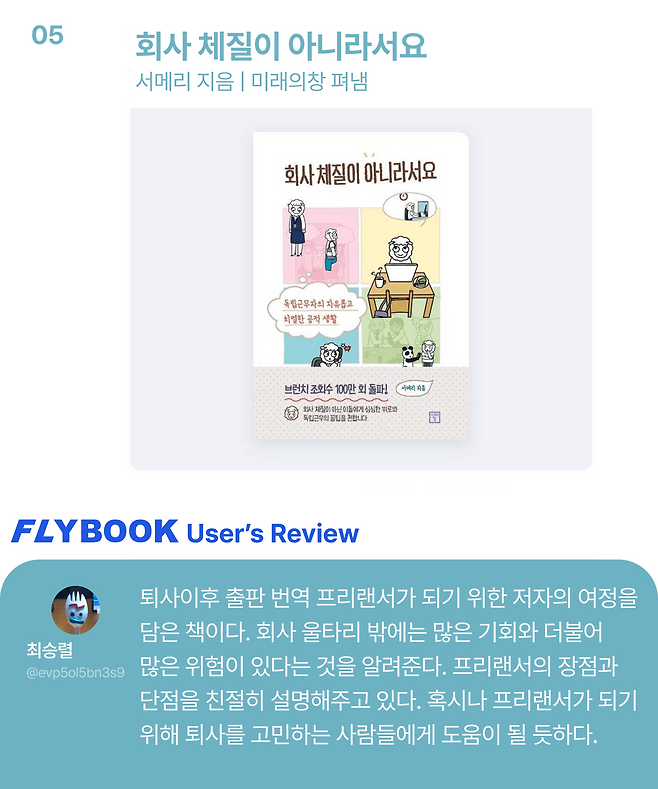 퇴사 이후 출판 번역 프리랜서가 되기 위한 저자의 여정을 담은 책이다.