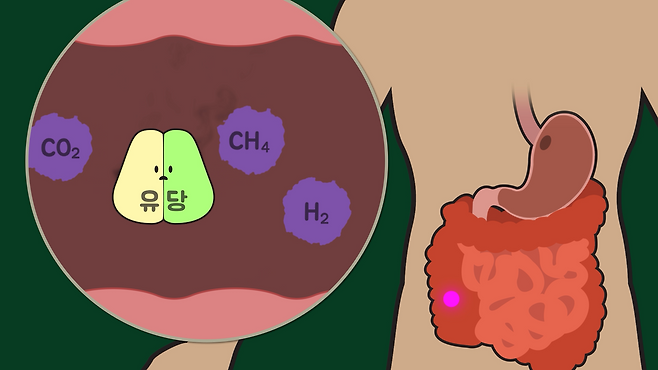 그런데 락타아제가 부족하면 분해되지 못한 채 장내 미생물과 만나 발효되면서 수소나 이산화탄소, 메탄가스 등을 발생시킵니다. 이들 가스가 장내 신경을 자극해 복통이나 복명, 방귀 등을 유발하는 증상이 유당불내증입니다.