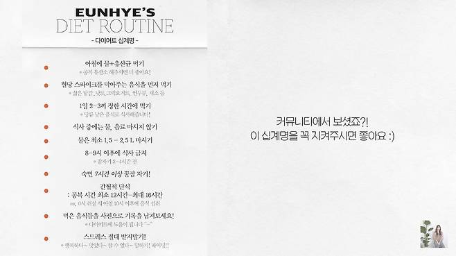 단기적인 체중 감량보다 장기적으로 건강해지는 것이 진짜 다이어트라는 사실, 모두 잊지 않으셨으면 해요. 지금부터라도 윤은혜의 루틴을 참고해 나만의 건강한 라이프스타일을 만들어보세요.