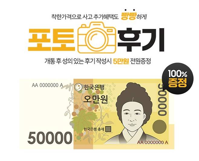 할부원금 0원 공짜폰 현금사은품 5만원