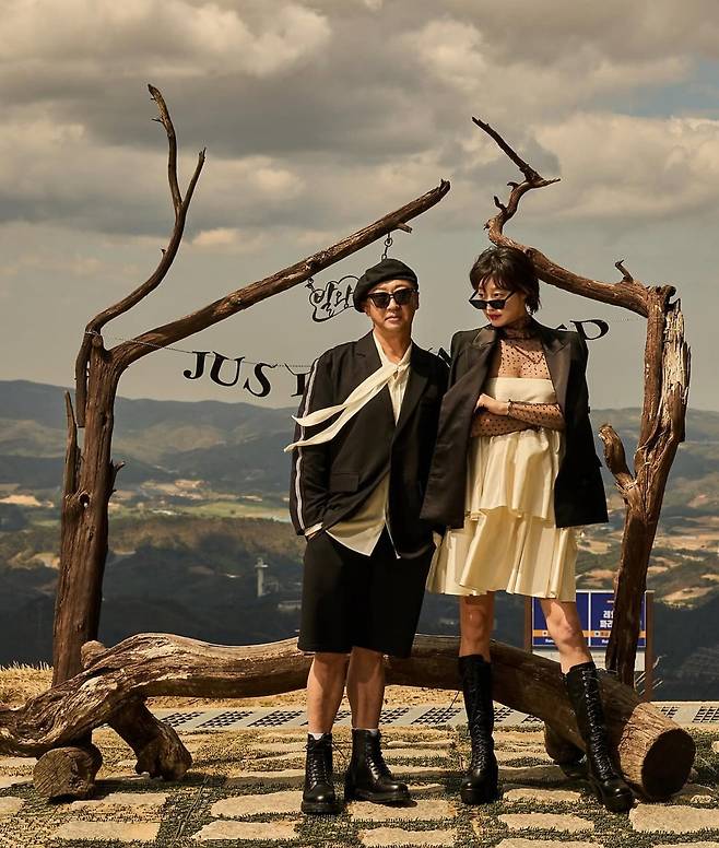 하이패션 커플룩으로 산속의 대자연을