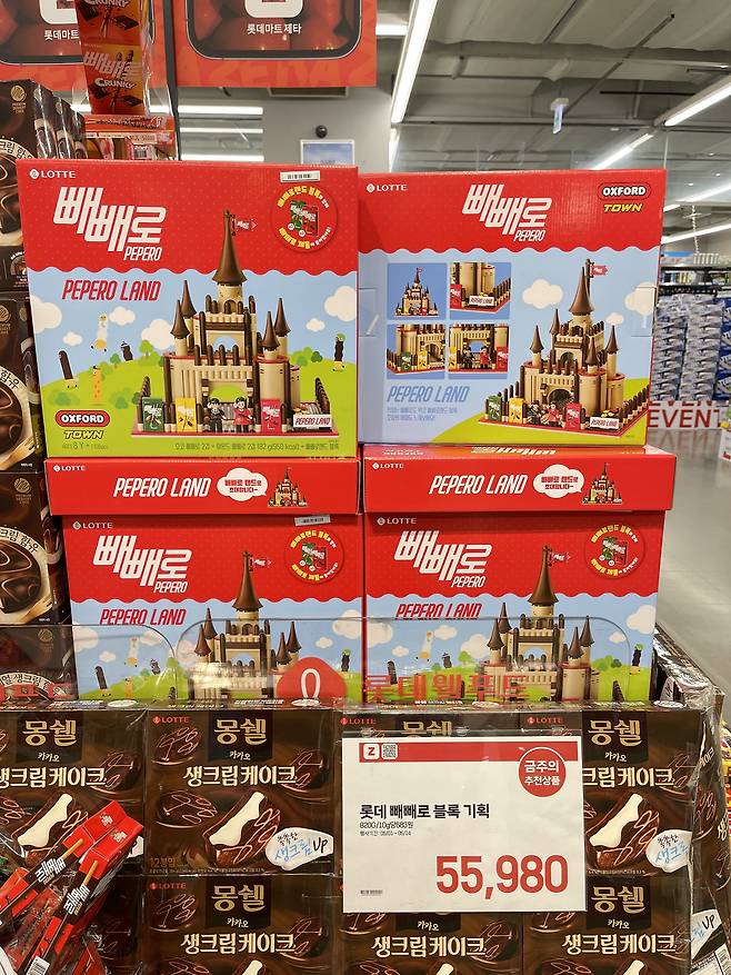 초코 빼빼로 2갑과 아몬드 빼빼로 2갑에 빼빼로 성모양의 옥스포드 블럭이 들어있는 구성이에요. 어린이날 선물로 추천해요!