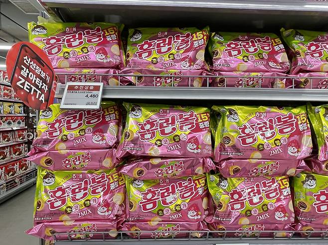 초코맛의 홈런볼은 여전히 맛있고 딸기맛의 홈런볼은 인공적인 맛이 나서 아쉬워요.